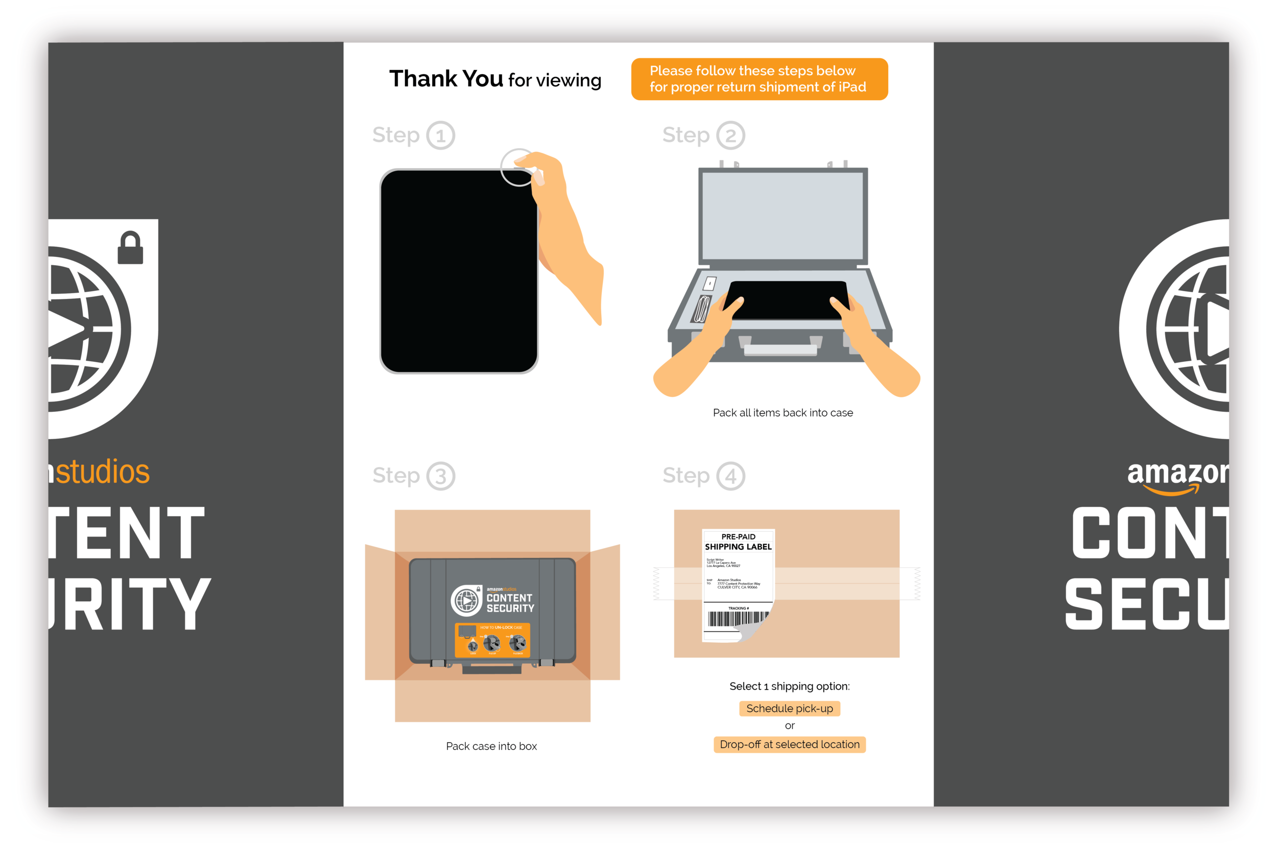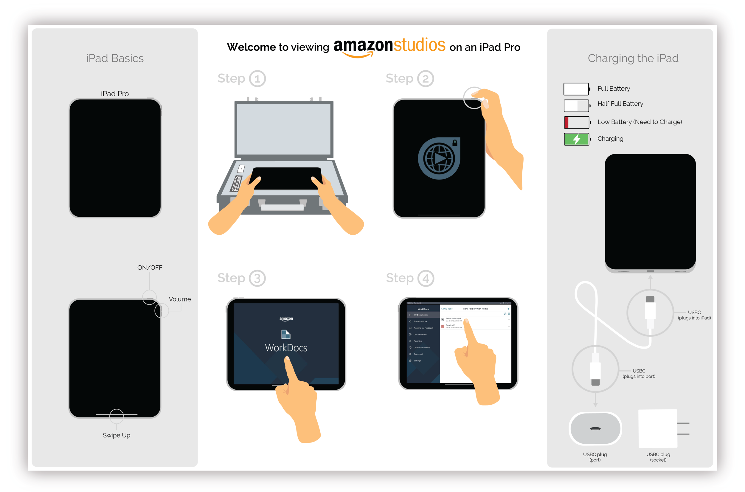 Gate fold instructional brochure explaining how to use the New iPad Pros that were sent for script reading